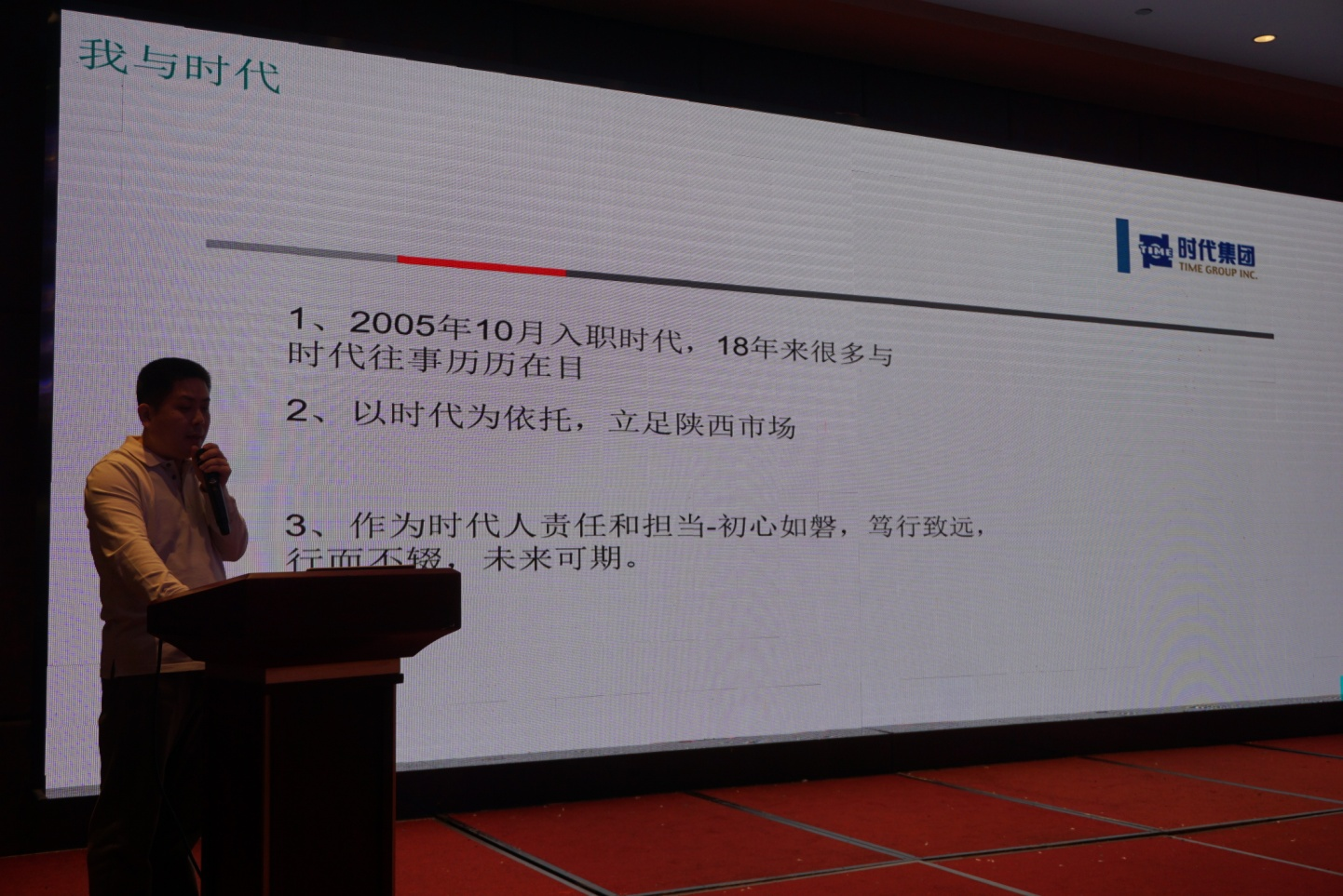 接下来是渠道部总经理周绍辉向大家介绍了大家最为关心的:时代渠道年度工作概述、时代渠道产品结构建设、时代渠道政策发布三大块内容,同样让人深思不已。