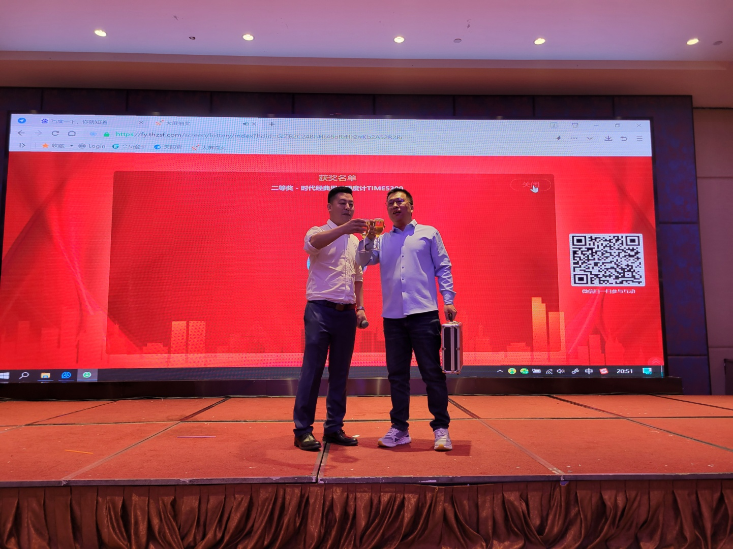 颁奖典礼结束,便迎来了时代之夜晚宴, 渠道销售部总经理周绍辉发表了热情洋溢的祝酒词,大家纷纷举杯,互相祝贺,觥筹交错、酒酣耳热之际,穿插进行了几波抽奖,以祝酒兴!热烈祝贺特等奖获得者王小林、一等奖获得者赵四川、三等奖获得者杨智军,奖品分别是TIME3200、TIME2180B、TIME5300.气氛热烈的晚宴直至午夜时分,大家意犹未尽。