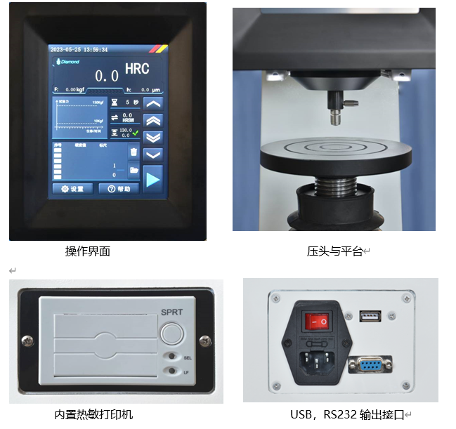 {C}7. {C}设备支持洛氏及表面洛氏硬度全部标尺的选用,支持各种硬度标尺的转换,具备圆弧修正补偿功能;