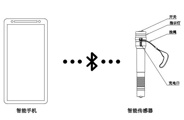 l 智能传感器部分通过唯一按键开机,通过不同的灯光显示,提示仪器状态;